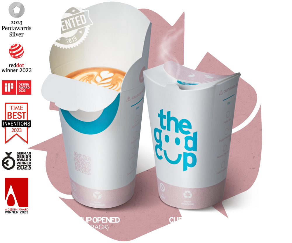 The Good Cup is a revolutionary paper cup designed to eliminate plastic lids, reduce waste, and elevate the drinking experience. Made from 100% paper with an aqueous coating, it’s fully recyclable, home compostable, and cost-efficient — the perfect choice for businesses ready to go green without compromise.